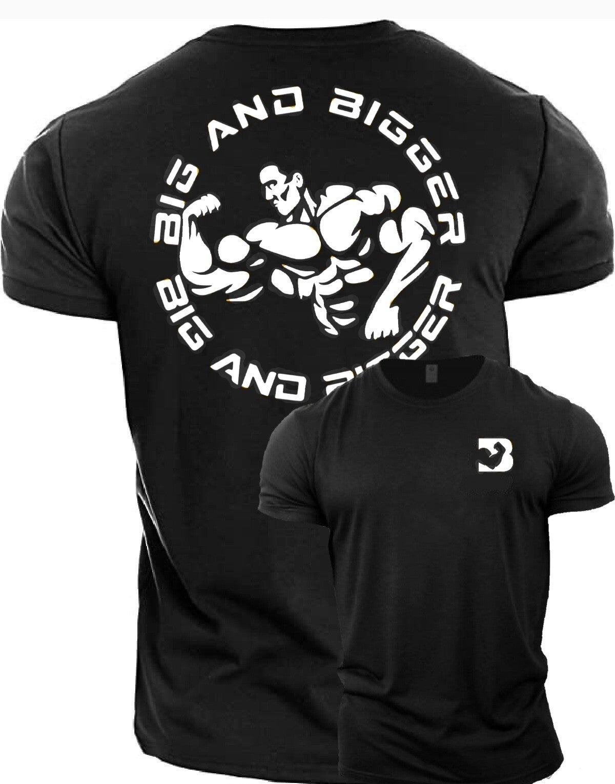 Het big and bigger logo op de rug en embleem op de borst, maken dit shirt een echte blikvanger in de gym. Al onze T-shirts komen met het big and bigger logo op de rechter mouw.